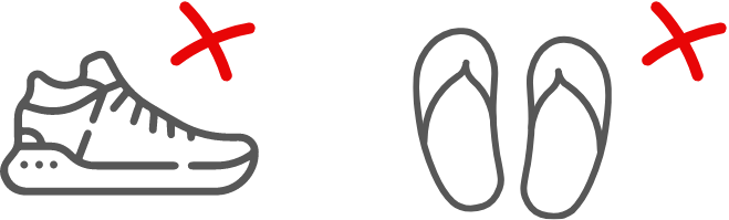 Por favor, usad calzado apropiado. Aunque las zapatillas elegantes pueden ser aceptables, no permitimos el uso de calzado excesivamente casual o atlético, como chanclas y sandalias de playa.